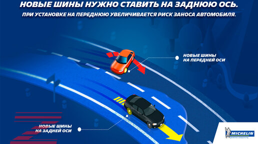 Мало кто знает правила расположения шин с разной степенью износа по осям, что очень серьёзно сказывается на безопасности вас и окружающих. На моноприводном автомобиле как правило всегда одна пара шин изношена больше другой. И при переобувке часто встаёт вопрос - на какую ось поставить новую пару шин или шины с меньшей степенью износа.
