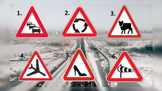 Перед вами простой тест — вы увидите на картинке 6 предупреждающих знаков, однако один из них — лишний, поскольку такого дорожного знака не существует. Какого именно? Смотрим внимательно: