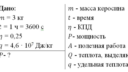 Полное условие задачи: Двигатель израсходовал 3 кг керосина за 1 ч работы. Какова средняя мощность работы двигателя, если его КПД равен 25 %? Краткое условие задачи: Решение задачи: Запишем формулу для...