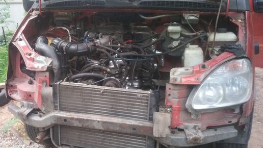После пробного пуска двигателя, продолжаем сборку. Установил на место все трубочки. Потрескавшиеся, примерно половину, заменил на новые. Стяжками прикрепил провода косы, чтобы не болтались. На радиаторе установлены вентиляторы от Нивы.