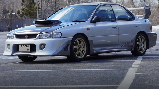 Снаружи спорткар выглядит как обычная Impreza с кучей тюнинга с AliExpress, но именно таким его выпустили в 2000 году — с аэродинамическим обвесом, огромным антикрылом и чёрным карбоновым капотом с воздуховодом. Под капотом — 2-литровый турбооппозитник EJ20 на 300 л.с. (353 Нм), который работает в паре с 5-ступенчатой механикой. У машины полный привод, два дифференциала повышенного трения, усиленная подвеска, кованые диски RAYS и около 5 сек...