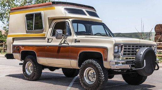 Это Chevrolet K5 Blazer Chalet Camper 1976 года. За два года производство построили около 1 800 таких машин. Пробег автомобиля на фото — всего около 91 000 км. Внедорожник отреставрировали, но сохранили оригинальные агрегаты и салон. Техника: → 5,7-литровый V8 с четырёхкамерным карбюратором на 165 л.с. (364 Нм); → 3-ступенчатый автомат; → постоянный полный привод с двухступенчатой раздаткой и дифференциалом повышенного трения на заднем мосту...
