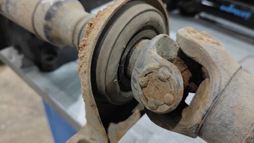 В работу поступил кардан от немецкого минивэна. Карданный вал на крестовинах, состоит из трех частей. История его жизни насчитывает не одну сотню тысяч километров, и не один ремонт. Кардан к нам приехал с комплексом неисправностей. Мы столкнулись с приваренными на шайбы крестовинами, неправильной сборкой частей кардана относительно друг друга, и балансировкой с использованием подручных материалов... Взялись исправлять ситуацию: 1...