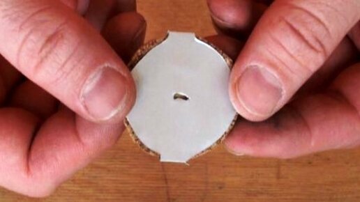 Скрепляем кусок пробки с пластиной, вырезанной из алюминиевой банки...