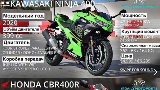 Обзор на Kawasaki Ninja 400 🆚 Honda CBR 400
