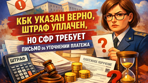 КБК указан верно, штраф уплачен, но СФР требует письмо об уточнении платежа: законно ли это и что делать плательщику