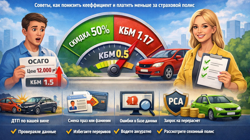Как снизить КБМ и сэкономить на ОСАГО — причины роста коэффициента и способы восстановления. Разбираем, как снизить КБМ по ОСАГО: причины повышения коэффициента, ошибки в базе, способы восстановления и практические советы для экономии на страховке. Коэффициент бонус-малус (КБМ) — это один из ключевых факторов, влияющих на стоимость полиса ОСАГО. Именно он отражает страховую историю водителя и показывает, насколько аккуратно человек ведет себя на дороге. Чем ниже коэффициент, тем дешевле страховка...