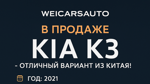 Kia K3 — это одна из самых популярных моделей корейского бренда, идеально подходящая для городских поездок и комфортных путешествий. Автомобиль сочетает в себе современный дизайн, экономичный двигатель и проверенное качество сборки, что делает его отличным выбором для водителей, которые ценят надёжность и стиль. Компания WEICARSAUTO предлагает к продаже проверенный автомобиль Kia K3 из Китая, с доставкой «под ключ» до Уссурийска, а также возможностью отправки в любой город России. 📅 Год выпуска: 2021