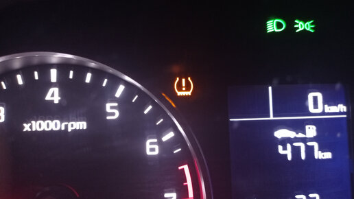 Недавно поменял на Киа Рио 4 летнюю резину на зимнюю. "Попинал" колёса, вроде бы всё нормально по накачке и поехал. Так вот через 100 км загорелся знак, как на фото. Восклицательный знак в профиле шины. И что вы думайте он означает? Оказывается, что давление в шинах не соответствует заявленным требованиям...