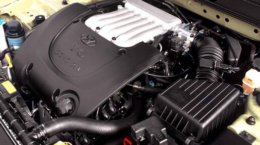 Бензиновый V6 от корейского концерна - последний 6-ти цилиндровый двигатель с ресурсом под миллион километров в трассовом режиме, в городском цикле, по пробкам, со средней скоростью около 20-25 км/ч, мотор проходит 400-500 т.км. не требуя абсолютно никакого ремонта. Залог успеха - это простота и консервативность конструкции. Еще раз повторюсь: простота - это залог надежности. Блок цилиндров: изготовлен из алюминия с чугунными гильзами. Для увеличения жесткости блока, в нижней части предусмотрели усилитель, который соединяет крышки подшипников...