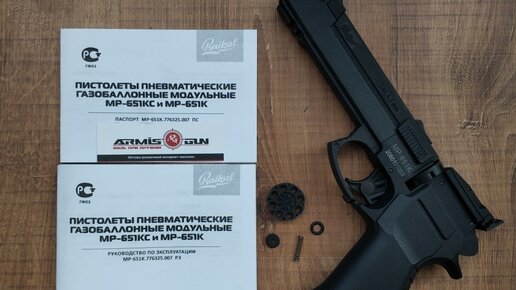 Пневматический пистолет МР-651к стреляет как шариками BB 4,5 мм, так и свинцовыми пулями калибра 4,5 мм. Съемный Барабан вмещает 8 пуль, встроенный магазин рассчитан на 23 шарика ВВ. Источник энергии — 12-граммовые баллончики с СО2...