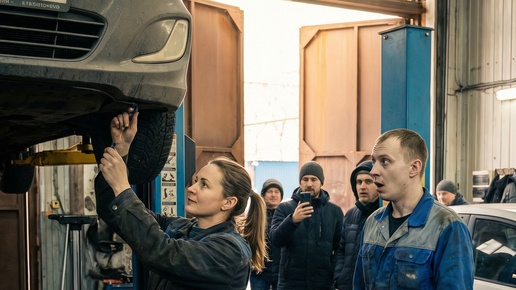 Автосервис «Пит-Стоп» на окраине Москвы. Вторник, одиннадцать утра. Ольга приехала на диагностику. Машина — «Хёндай Солярис» две тысячи двадцатого года. Пробег — семьдесят три тысячи. Мастер-приёмщик Денис, тридцать два года, уверенный взгляд, говор быстрый. — Так, девушка, что у нас? — Бампер немного болтается. Снизу. Хочу понять, серьёзно ли это. Денис покачал головой. — Ну-у-у, посмотрим. Загоняйте на подъёмник. Ольга загнала машину. Денис исчез под днищем. Вернулся через пять минут с озабоченным лицом...