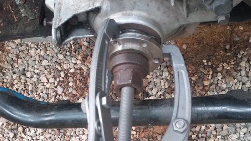 Пришла пора установить ступицу коленвала. Казалось бы, простая операция. Чтобы не бить по коленвалу, изготовили из двух болтов устройство для запрессовки ступицы на коленвал. Пришлось помотаться по магазинам, чтобы найти болт на 24 с шагом 2.