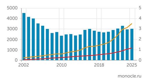 читайте на monocle.ru Индекс промышленного оптимизма вернулся в период пандемии. Реальный курс рубля в 2025 году потяжелел на 17% За последние четыре года средние цены на новые автомобили в России выросли почти в полтора раза, с 2,4 до 3,5млн рублей, подсчитал Сергей Целиков, руководитель агентства «Автостат». Если пересчитать в доллары, средняя цена нового легкового автомобиля в России превысила 45 тысяч. «Автомобили в России становятся одними из самых дорогих в мире», — констатирует Целиков, приводя средние цены на новые авто в Индии (11 тыс...