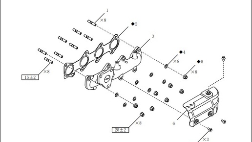 Плоские шайбы при сборке необходимо заменить новыми. 5. Снимите выпускной коллектор