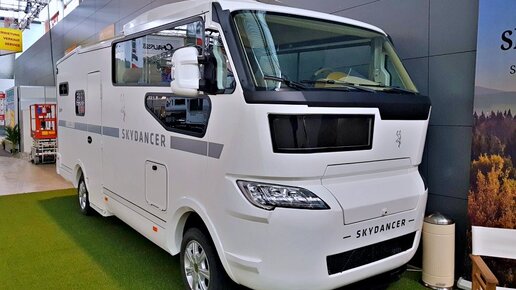 В Штутгарте проходит автовыставка CMT-2019. На ней и был представлен моторхоум Skydancer Apéro, кстати, первый серийный автомобиль такого класса. Вес дома на колесах первой генерации составлял 7,5 тонны и поставлен был на «тележку» от Mercedes-Benz Atego. Кстати, пришлось усердно поработать над водительским местом, панелью и прочим. Их перенесли выше, объединив место для водителя с еще тремя пассажирскими сидениями. Над ними установлена раздвижная крыша, которая превращает дом на колесах в кабриолет...