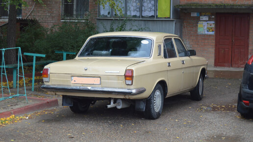 Поехал в город, и в одном из дворов встретил эту машину, судя по новому глушителю, машина прошла стадию реставрации. Я был близко знаком с ГАЗ–24. Однажды даже ездил на такой машине за рулём в командировку. В Красноярск–45 (Заозёрный). Любой советский человек, а тем более водитель хотел иметь такой автомобиль. Но он был не доступен для простого советского гражданина. Дело не в деньгах, а в том что купить новую машину было невозможно. ГАЗ–24 можно было выиграть в лотерею по лотерейному билету ДОСАФ цена билета один рубль...