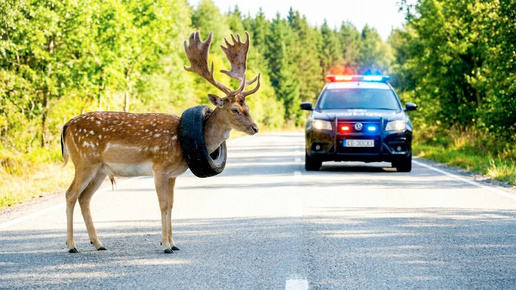 Я ехал по горной дороге солнечным утром, когда прямо перед машиной на асфальт выскочил олень. Я ударил по тормозам — автомобиль остановился в трёх метрах от него. Олень стоял посреди дороги и тяжело дышал. Его шерсть была мокрой от пота, глаза — полны усталости. Я сразу почувствовал: что-то не так. Я медленно вышел из машины и подошёл ближе. В этот момент у меня буквально похолодело внутри: на шее у оленя, как ошейник, сидела автомобильная шина. Огромные ветвистые рога, красивое животное — и эта чёрная, чужеродная штука, глубоко врезавшаяся в шею...