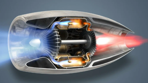 В руактивном двигателе есть : вентилятор ,компрессор , камера сгорания турбина сопло и смеситель . Объясню для чего они нужны и принцип действия на пальцах . Воздух попадает в двигатель через вентилятор и компрессоры , попадая в камеру сгорания . Там кислород смешивается с топливом , сгорает и расширяется ...