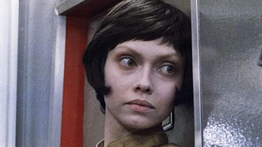 Девушка с абсолютно лысой головой и в облегающем трико послушно опускает в пол огромные нездешние глаза...