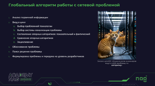 На основе этой статьи была составлена и прочитана лекция на мероприятии "Академия НАГ 2025" от отдела коммутационного оборудования. В качестве иллюстраций к главам в статье будут представлены слайды презентации для мероприятия. Кому-то тема диагностики и траблшутинга внушает страх, связанный с авариями, недосыпами, депримированием, кто-то находится на стадии гнева, отрицания, торга, депрессии, а кто-то уже пришёл к принятию того, что эта тема так или иначе коснётся его и, если инженер хочет быть...