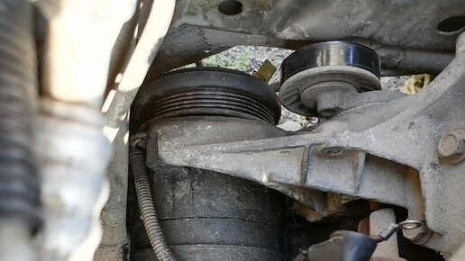 После заправки кондиционера прошел день,как он перестал холодить,утечку обнаружил при снятии вышедшего из строя генератора(совпало две поломки), снял генератор и увидел по шву компрессора пузырьки и масло. для его снятия нужно снять колесо и под локером 2болта,а на задней крышке что бы был доступ к двум болтам надо открутить болт который держит заправочную трубку. так как он в масле,что бы вынуть через верх,вкрутил болт и за него вытянул наверх. Все почистил и отмыл,в интернете на сайте cool-system...