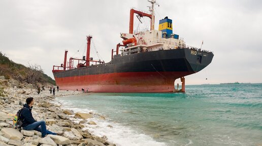 В середине декабря 2018, во время шторма, на берег возле Новороссийска, под Кабардинкой, выбросило большой сухогруз, с тропическим названием «Rio». Судно сразу стало местной достопримечательностью, к которой стали организовывать целые туры. Мы также не стали упускать такое редкое событие и небольшой компанией отправились к кораблику. Маршрут был короткий, буквально пару км от машины, во время пути открывались виды на море, поражаешься сколько кораблей одновременно находятся на рейде. Длина "Rio" почти 150 метров...