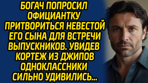 Богач попросил официантку притвориться невестой его сына для встречи выпускников. Одноклассники сильно удивились, увидев кортеж из джипов...
