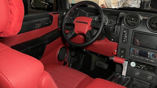 Hummer на перетяжке салона. ▪️Перетяжка потолка в черный цвет с покраской пластика. ▪️Перетяжка всех сидений, вставок на дверных картах, подушки руля, ручки КПП, нижней части торпеды, центрального подлокотника в красную экокожу. ▪️Перетяжка обода руля и подлокотников на дверях в чёрную экокожу...