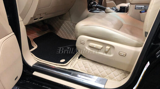 Для изготовления 3D ковриков из эко кожи для Лексус 570, 450 (или, как многие сейчас говорят, 5D ковриков) заказчиком был выбран материал «Люкс», наиболее оптимальный по соотношению цена/качество. Данное полотно достаточно плотное, имеет мягкую структуру и узор в виде ромбиков, вышитый двойной строчкой. Цвет материала гармонично сочетается с кожаным салоном бежевого цвета, практически полностью сливаясь с ним, что смотрится очень благородно и стильно. 3Д коврики из экокожи на Лексус 570/450 надежно...