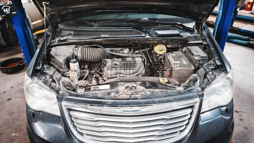 Замена помпы Гранд Вояджер Для замены помпы Гранд Вояджер не было никаких предпосылок: при холодном запуске приводная система молчала как партизан, антифриз чётко держал уровень, а двигатель не перегревался. Машине предстояло путешествие в десять тысяч километров, потому владелец решил перестраховаться, опираясь на опыт владения Додж Джорни с таким же двигателем. Дано: Первым делом забираем машину из-под палящего солнца, загоняем в цех и открываем капот, чтобы быстрей остудить двигатель. Вся работа пойдёт по левому краю, начиная с термостата и заканчивая помпой...