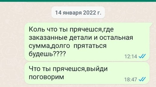 Нашей машине 25 лет, и она местами гниёт. Текущим ремонтом машины муж занимается сам, любит это дело. Но вот поменять пороги, заварить дыры и покрасить решил доверить специалисту, которого нашёл на одном известном сайте объявлений. Отзывы не читал, и это было ошибкой. Мастер осмотрел машину, обозначил ориентировочные сроки и цену. Взял предоплату 35 тысяч рублей, сказал, что закажет необходимое железо и пороги. В назначенный день муж должен был оставить мастеру машину на две недели, но мастер со всеми помощниками заболел, даже справку прислал по ватсапу...
