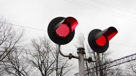 Что означают красный мигающий сигнал или два попеременно мигающих красных сигнала светофора, установленного на железнодорожном переезде? Варианты ответов: а) Движение разрешается с особой осторожностью. б) Движение запрещено. в) Светофорная сигнализация неисправна. Правильный ответ указан в конце статьи. Подумайте, прежде чем его смотреть. Красный мигающий сигнал или два попеременно мигающих красных сигнала светофора запрещают движение. Такая сигнализация применяется главным образом на железнодорожных переездах...