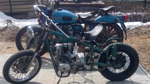 ... Продолжение. Определившись с подвеской и внешними элементами, подсобрал мотоцикл, чтобы установить взаимное расположение агрегатов. Двигатель, конечно, оставался на том же месте, но вот воздушный фильтр, генератор, аккумулятор - отличались от стандартных, поэтому нужны быть уверенным, что пазл сложится Сначала хотел установить корпус воздушного фильтра от "Волка", но он оказался достаточно громоздким и в тесную раму М-63 никак не хотел помещаться. От этой идеи пришлось отказаться в пользу корпуса фильтра "КБМТС" меньшего размера...