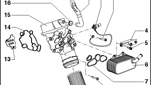 1 - Трубка ❏ вентиляции картера двигателя 2 - Датчик давления масла -F1- ❏ 1,4 бар, черный ❏ проверить → Глава ❏ Момент затяжки 21 Нм 3 - 15 Нм ❏ с проводом массы для датчика давления масла 4 - Кронштейн 5 - 15 Нм 6 - Масляный радиатор ❏ соблюдать указания → Глава ❏ проверить отсутствие соприкосновения с расположенными рядом узлами ❏ Схема подключения шлангов системы охлаждения → Глава ❏ снять и установить → Глава 7 - Прокладка ❏ заменить 8 - 15 Нм 9 - Уплотнительное кольцо ❏ заменить ❏ слегка смазать ❏ монтажное положение → Илл...