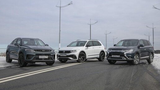 Самые популярные на российском рынке – модели с двигателем до 150 л. с. и средним набором опций. Однако в условиях дефицита сложно найти автомобиль в соответствующем сегменте без чрезмерных дилерских наценок. Если увеличить бюджет покупки, белее интересными будут кроссоверы с мощными моторами в полной комплектации. Изучим такие предложения с помощью сравнительного теста Mitsubishi Outlander, Volkswagen Tiguan и Geely Tugella. Основные характеристики В следующем перечне представлены параметры Mitsubishi...