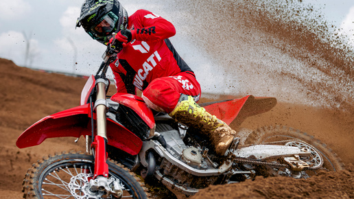 Созданный для гонок, рождённый на треке. Desmo450 MX — первый мотокроссовый мотоцикл Ducati с десмодромным механизмом газораспределения, призванный перенести гоночную ДНК Borgo Panigale на бездорожье.