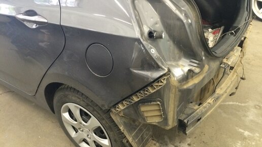 Дорогие друзья. Добрый день! Предлагаем Вашему вниманию ещё одну работу по кузовному ремонту а/м Hyundai Solaris, у которого в результате ДТП было повреждено заднее левое крыло, а также был сломан задний бампер и задняя левая фара. Бампер и фара под замену, поэтому фото данных деталей не публикуем. Что касается заднего бампера, то помимо его замены и окраски, нами был установлен комплект задних парктроников, соответственно с изготовлением отверстий под них. После того, как всё разобрано, начинаем заниматься задним левым крылом...
