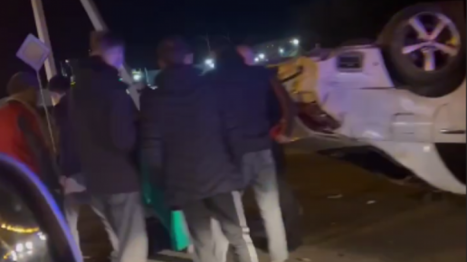 Автомобиль Toyota Verossa снёс столб и встал на крышу на КСК в Чите