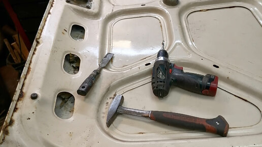 ... Продолжение. Крышка багажника моей машины совершенно отвратительная. Коррозия погрызла качественно. По-хорошему надо менять, но ничего более-менее вразумительного поблизости не оказалось. Что ж, попробуем восстановить. Сразу предупреждаю - во-первых, это не профессиональный ремонт, во-вторых - делаю для себя, а не для музея, никаких гарантий что дефекты не вылезут обратно через неделю/месяц/год. На то она и крышка багажника, в случае чего размахнуться и выбросить никогда не поздно. Крышка состоит...