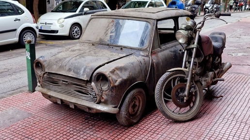 Классический Mini Cooper и мотоцикл Yamaha были найдены на парковке отеля более чем через три десятилетия после того, как владелец оставил их там. Обычно заброшенный транспорт находят где-то в сараях вдали от цивилизации или на стихийных автомобильных кладбищах. Но Mini Cooper и мотоцикл Yamaha ждали отряд спасения в центре греческих Афин. Проведённые годы под землёй их не пощадили. Mini находится в плачевном состоянии — три десятилетия воздействия пыли и влажности сделали своё дело. К сожалению, классический автомобиль уже вряд ли удастся спасти...