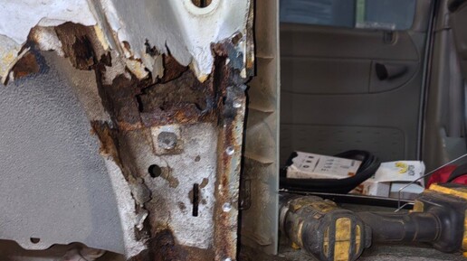 🔥 Как я переварил гнилую заднюю арку Dodge Caravan: борьба с ржавчиной и спасение кузова! Когда я купил своего Dodge Caravan 1999 года, сразу заметил, что задние арки подгнили. Но настоящий ужас ждал, когда я открыл дверь - металл буквально расходился, а под облезшей краской скрывалась сквозная коррозия. Решение было одно: резать без жалости и переваривать! 🔧 Что было сделано: 1️⃣ Снятие двери и оценка масштабов катастрофы - Снял раздвижную двери и ободрал краску - под ней оказалась дыра размером с ладонь...