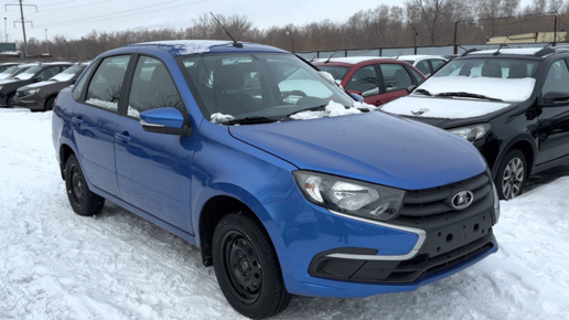 Представлю вашему вниманию автомобиль Лада Гранта седан в цвете «Голубая планета». Очень яркая, модная, красивая и стильная. Она выпуска 2022 года, еще со старым рулем, с кондиционером. Резина Кама Грант, размер 175/65 R14 на штампованных дисках. Зеркала и ручки дверей окрашены в цвет кузова. Пробежимся по комплектации, салону. Тут нет подушек безопасности. Есть два электрических стеклоподъемника, электрорегулировка зеркал. Аудиоподготовка – 4 колонки, кондиционер, розетка на 12 вольт. Такой автомобиль сейчас продается в автосалонах, и стоит 765 тысяч рублей...