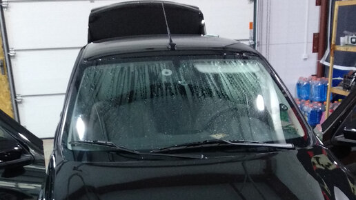 Выпал снег, начали посыпать песком и от камазов со свеклой начали лететь камни в машину. Собирался на прошлой неделе, но сегодня помыв машину и увидев скол аккуратно над лобовым стеклом решил процесс ускорить...