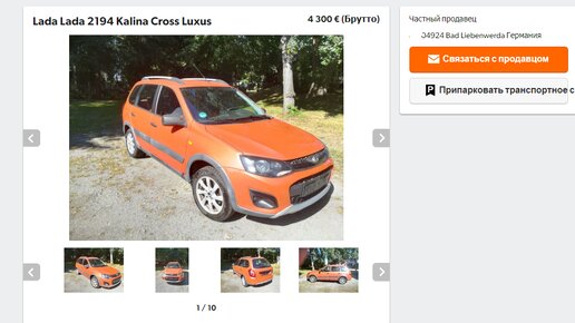 Здравствуйте, уважаемые читатели! На зарубежных сайтах объявлений не редкость и наши отечественные автомобили. Во многих странах любят нашу Ниву, за ее низкую стоимость, простоту в обслуживании и хорошую проходимость. Но так же за границей можно найти и такие машины как Приора, Калина, Веста. Я случайно наткнулся на объявление о продаже Лады Калины Cross 2017 года в Германии. В объявлении есть описание, в котором продавец сообщает о том, что автомобиль на полном ходу, не имеет очагов коррозии. Однако, к сожалению, перестал работать электро-усилитель руля...
