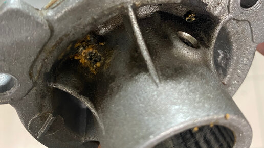 Недавно была произведена замена помпы системы охладждения двигателя. На момент замены помпы пробег автомобиля составил ~ 88 тыс. км. Официальный диллер рекомендовал заменить помпу на 70 тыс. км. (Проходил ТО-6 до 90000 тыс. км) В данной статье представлено состояние помпы на момент 88 тыс. км. В помпе наблюдался люфт (~0,1 мм), однако подтёков из помпы не наблюдалось, но, стоит отметить, в зазор начинала забиваться копоть. Обратил внимание на корродирующие смазочный канал и лыску посадочного места пластиковой крыльчатки...