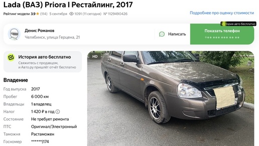 В продаже появилась уникальная Lada Priora 2017 года с пробегом 6000 км – редкий лот нашли в объявлениях