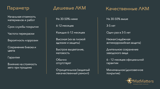 Кузовной ремонт и покраска автомобиля — это не просто способ вернуть машине привлекательный внешний вид. От качества используемых лакокрасочных материалов (ЛКМ) напрямую зависят: Разберём подробнее, почему к выбору ЛКМ нужно подходить максимально ответственно. На первый взгляд может показаться, что использование дешёвых лакокрасочных материалов (ЛКМ) при кузовном ремонте — это очевидная экономия. Однако в долгосрочной перспективе такой подход оборачивается дополнительными расходами. Экономия на автомобильном...