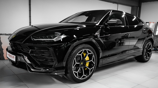 Оклейка Lamborghini Urus цветной полиуретановой пленкой с проемами: глубокий черный глянец вместо серого