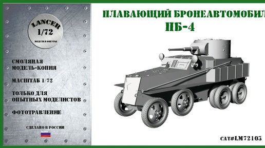 Lancer из Москвы показала тестовую сборку своей смоляной модели плавающего бронеавтомобиля ПБ-4 в масштабе 1/72: Плавающий бронеавтомобиль ПБ-4 (каталожный нмоер LM72103)